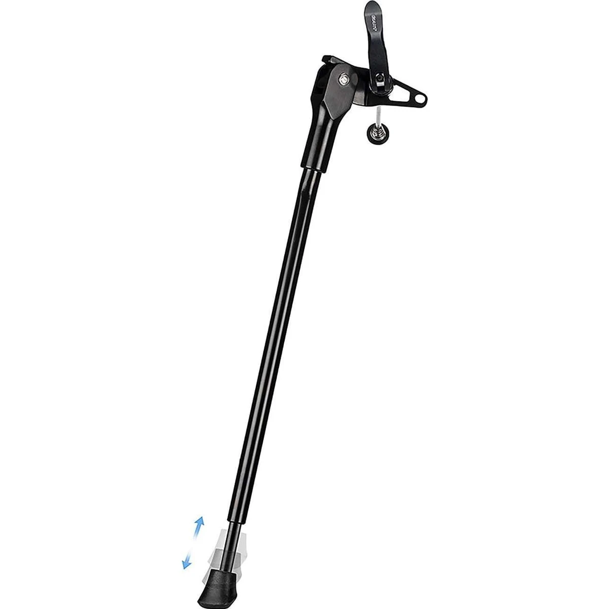 Base latérale pour les vélos avec frein à disque sans support de béquille latérale. Serrage fiable via l’attache rapide au niveau de la patte de fixation.